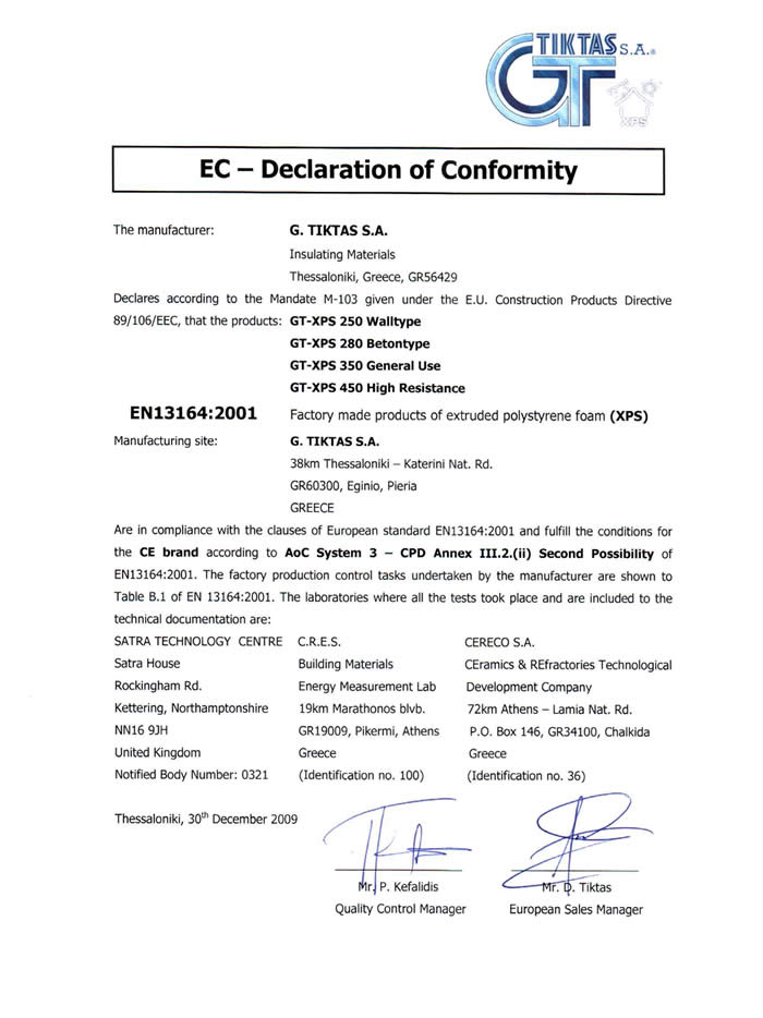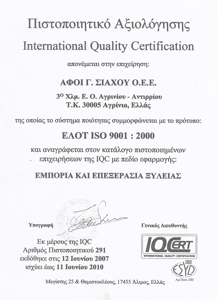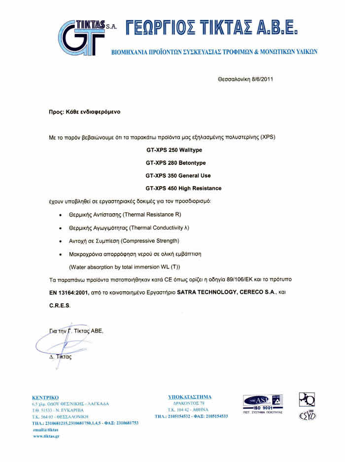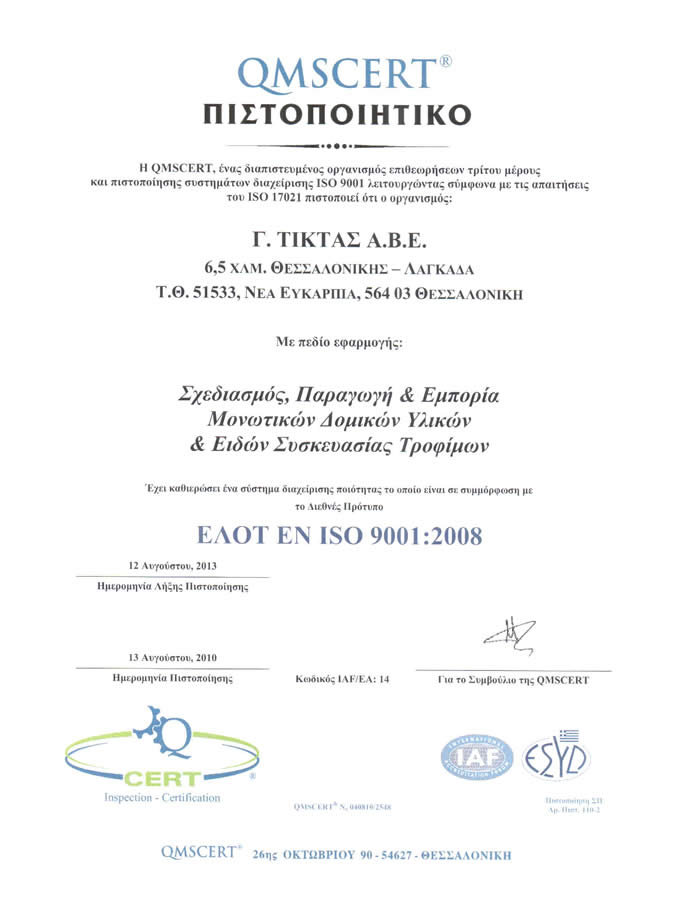 ΠΙΣΤΟΠΟΙΗΣΕΙΣ ΤΗΣ ΕΤΑΙΡΕΙΑΣ ΤΙΚΤΑΣ ΓΙΑ ΤΗΝ ΟΠΟΙΑ ΕΙΜΑΣΤΕ ΑΝΤΙΠΡΟΣΩΠΟΙ ΣΤΑ ΜΟΝΩΤΙΚΑ ΥΛΙΚΑ